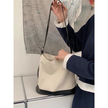帆布包包女2024新款高級質感小眾大容量通勤托特包百搭斜挎水桶包
