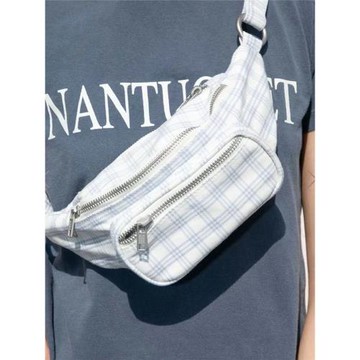 藍白格子腰包2023新款女士鏈條包斜挎腰包女潮ins百搭酷夏胸包