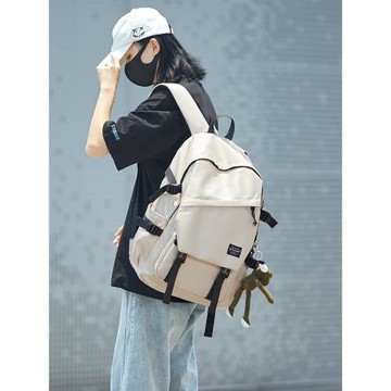 LIKEJON日系設計感小眾書包女高中大學生百搭大容量雙肩包背包男