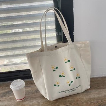 2025年春夏新款韓風小花朵清新文藝帆布包女大容量單肩通勤手提袋