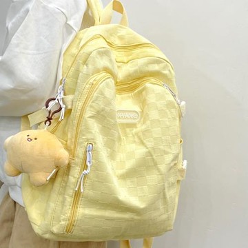 鵝黃色雙肩包女夏輕便時尚防潑水書包女大學生黑色小包背包女雙肩