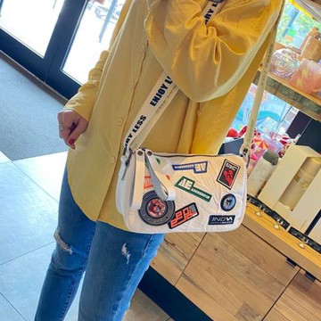 超火腋下包女2024新款徽章包包夏季高級感斜挎包時尚真皮單肩包潮