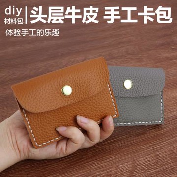 瘋馬皮短款男錢包手縫三折錢夾手工DIY材料復古真皮多功能卡包015