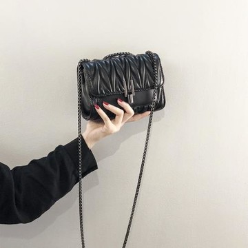 ins超火小包包女2025新款韓版洋氣褶皺鏈條小方包時尚斜挎口紅包