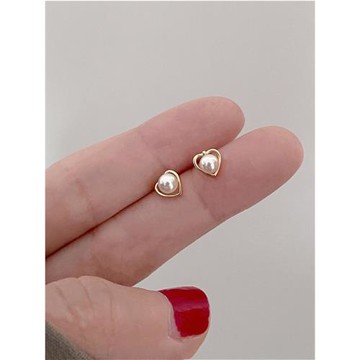 點我下載S925純銀金色愛心珍珠耳釘女小巧精致韓國簡約百搭氣質耳環冷淡風
