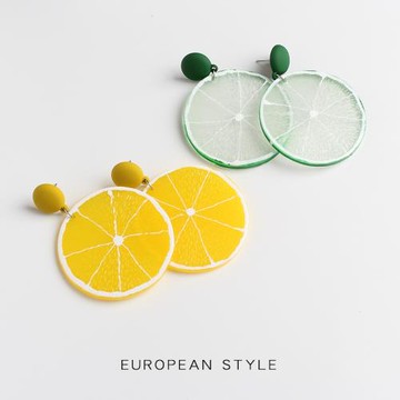 檸檬耳環夏天水果耳掛綠色設計感小眾耳飾春日飾品耳釘ins風茶系