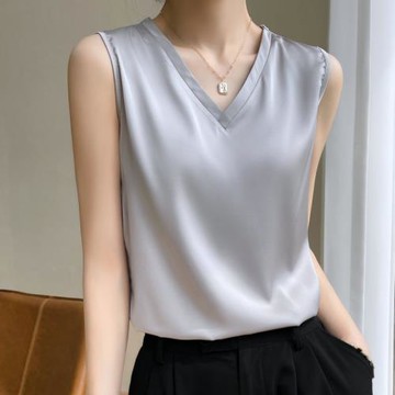高仿真絲背心女內搭外穿緞面百搭無袖V領上衣春夏仿蠶絲吊帶打底
