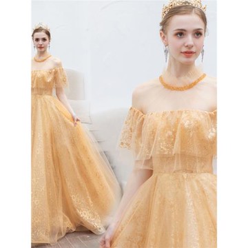 天使嫁衣金色新娘結婚敬酒服宴會表演演出主持人婚紗禮服2272批發
