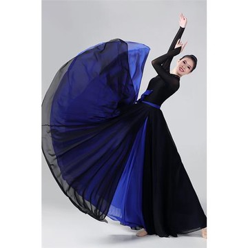 單層720度現代古典民族舞蹈練功服女雪紡半身裙紗裙飄逸演出大擺