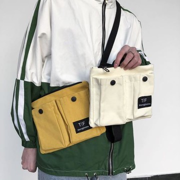 港風機能工裝包男生街頭日系簡約戶外登山尼龍布小挎包單肩斜背包