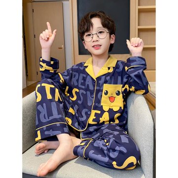 兒童睡衣男童長袖春秋款薄款中大童男孩寶寶2023家居服套裝春季