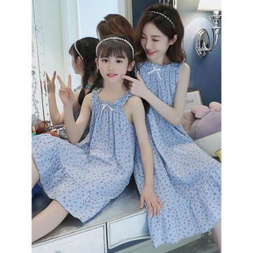 女童睡裙吊帶純棉夏薄款母女裝親子裝中大童寶寶兒童紗布睡衣裙