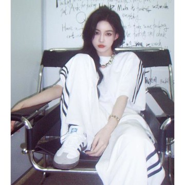 高級感網紅白色運動套裝女夏季休閑時尚闊腿褲小香風兩件套減齡潮