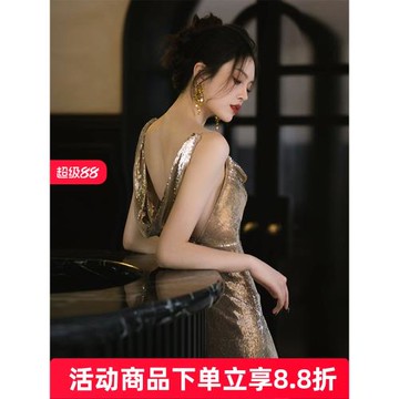 法式洋裝小晚禮服女設計感氣質輕奢高端生日宴會小個子亮片連衣裙