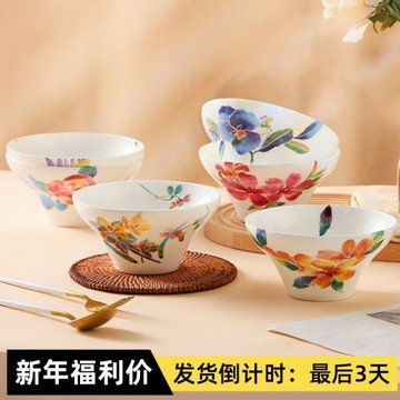 千代源日本進口陶瓷和風花卉米飯碗彩繪高腳碗隔熱防燙湯碗套裝