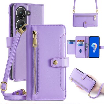適用Asus華碩Zenfone10手機殼斜挎ZenFone9翻蓋保護套8Flip全包ZS590KS真皮ZenFone7防摔ZS672背帶掛繩男女