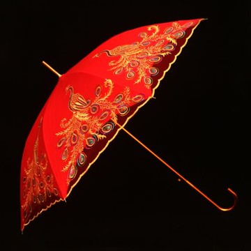 結婚紅傘婚慶紅色傘出嫁新娘傘長柄刺繡中式婚禮紅色雨傘喜傘婚傘