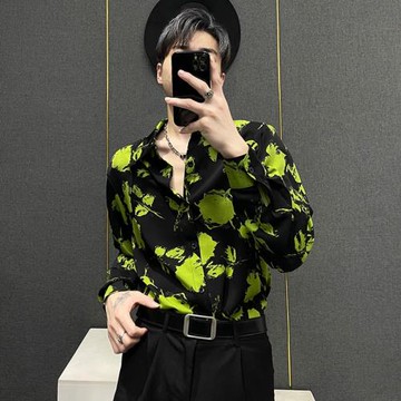 小眾復古寬松墊肩碎花襯衫男2025春夏新款時尚港風帥氣雪紡上衣男