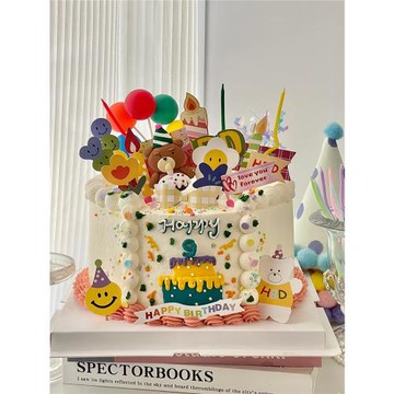 網紅韓系蛋糕裝飾擺件軟陶櫻桃蛋糕派對帽小熊氣球生日插件插牌
