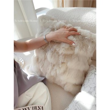 Texdream態度 真狐貍毛皮草抱枕套客廳沙發樣板間奢華靠枕含枕芯