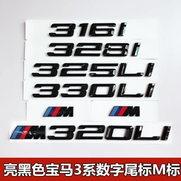 適用于寶馬3系亮黑色330Li 320i 328Li m335葉子板M側標數字M尾標