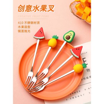 水果叉創意不銹鋼兒童水果簽家用可愛甜品叉寶寶餐叉吃蛋糕小叉子