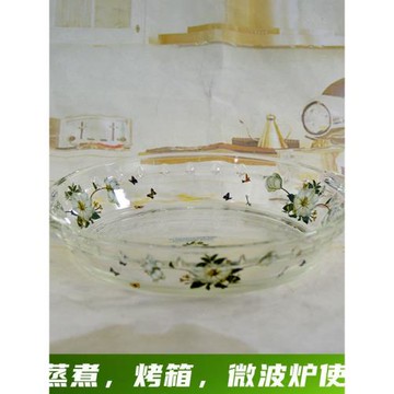 韓國韓式盤子菜盤家用微波爐加熱烤盤烤箱用蒸魚盤耐熱玻璃水果盤