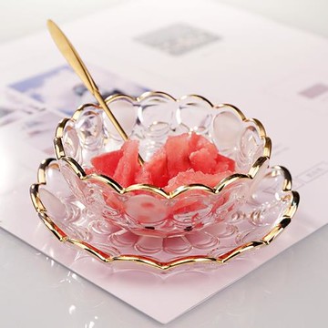 創意時尚透明描金調羹水果撈歐式家用甜品燕窩盅玻璃碗零食擺放盤