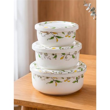 米奇力夫微波爐密封帶蓋陶瓷保鮮碗三件套家用保溫盒大號泡面湯碗
