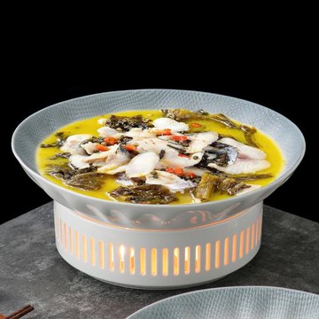 紅色陶瓷蠟燭加熱水煮魚碗小龍蝦盆寬邊酸菜魚碗毛血旺碗明檔餐具