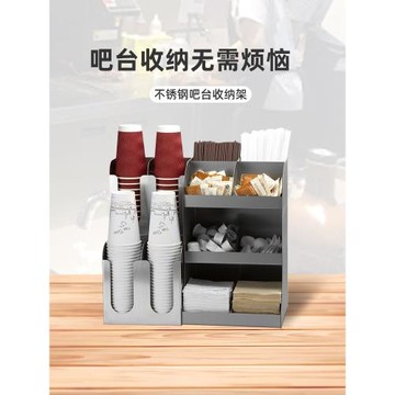 不銹鋼紙杯架取杯架一次性分杯器多功能杯蓋吸管收納盒奶茶店商用