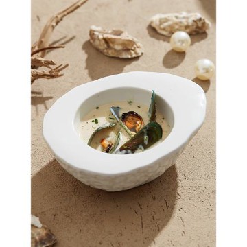 石紋蛋形保溫碗白色異形不規則意境菜分子料理高檔餐廳湯碗涼菜碗