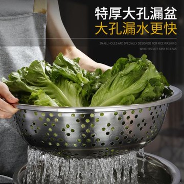 不銹鋼漏盆大孔洗菜盆瀝水籃盆子家用廚房洗米篩淘米盆大號特大號