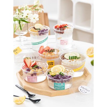 冰粉打包盒網紅水果撈雪糕刨冰一次性帶蓋專用碗燒仙草加厚透明杯