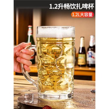 啤酒杯套裝輕奢高級感玻璃喝水杯帶把商用500ml扎啤杯家用大容量