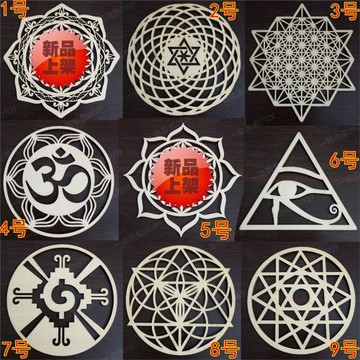 幾何圖案六芒星64面體何魯斯之眼木質杯墊水晶墊掛件擺件裝飾品