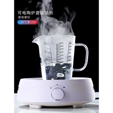 家用量杯玻璃杯刻度牛奶杯燕麥早餐杯大容量杯子帶蓋勺大人奶茶杯