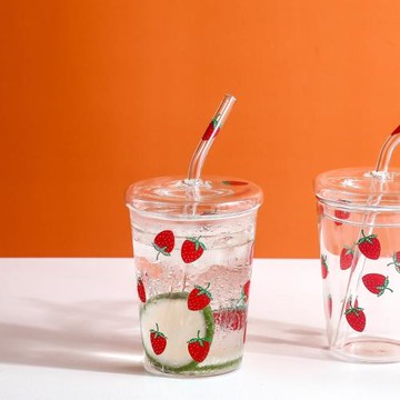 點屋設計 ins風可愛少女心草莓吸管玻璃杯耐熱水杯女帶蓋網紅杯子