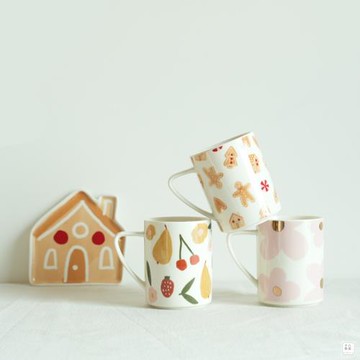 澳洲 kikki k手繪圖案小清新馬克杯姜餅人高顏值陶瓷杯咖啡杯水杯