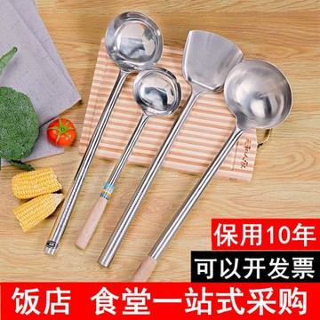 巨博不銹鋼炒勺廚師專用加厚炒鏟木柄長柄10兩勺湯勺商用打菜勺