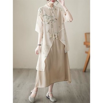 2026新款中國風旗袍改良連衣裙子中年媽媽氣質新中式大碼茶服漢服