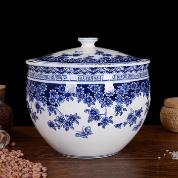 10斤20斤陶瓷米缸米桶景德鎮帶蓋青花陶瓷儲物罐腌菜腌肉缸壇水缸