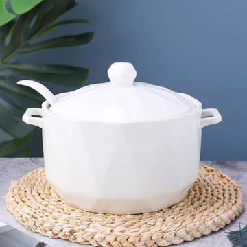 大號家用陶瓷純白色湯碗帶蓋雙耳湯鍋微波爐碗湯盆廚房豬油罐蒸鍋