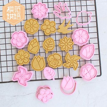 春天迷你小花春筍燕子樹葉餅干模具可愛3D按壓式餅干磨具