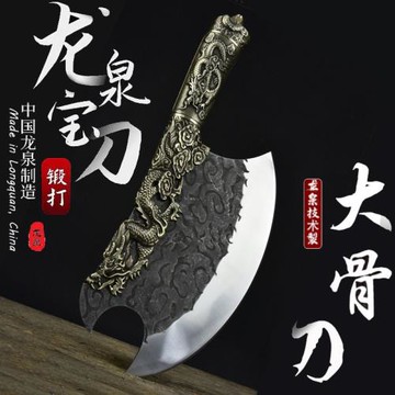 龍泉斧頭砍骨刀鍛打家用斬骨刀商用重型不銹鋼屠夫專用剁骨頭菜刀