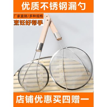 不銹鋼漏勺4目撈厘網籬線漏笊籬大油炸撈勺商用木柄鋼絲籬過濾勺