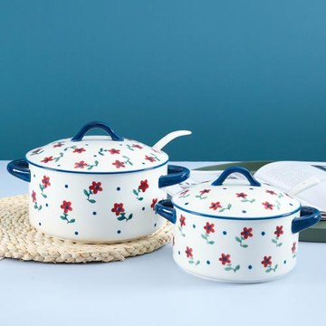 加厚搪瓷琺瑯湯鍋雙耳家用燉鍋奶鍋電磁爐燃氣通用煮面煮藥煮粥鍋