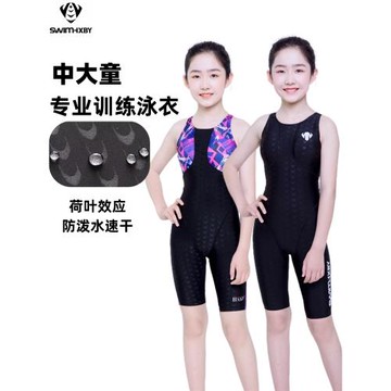 專業鯊魚皮速干兒童連體平角泳衣女女童中大童女孩帶胸墊訓練比賽