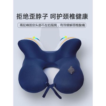 飛機U型充氣頸枕趴睡便攜旅游行睡覺神器按壓自動護頸托午睡頭枕
