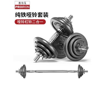 PROIRON/普力艾烤漆純鐵啞鈴杠實心二合一套裝男士家用室內可調節